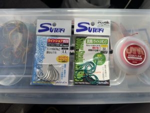 ロッド:6ft前後のライトジギングやスロー系のベイトモデルの竿で1番と2番クラスが多かった。個人的には棚が浅くなってきたらスピニングもありかと思った