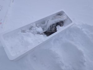 私は魚を送りたかったので、発泡スチロールに水を張っておいてそれを乗船前に外に置いておいたら下船する時間にはある程度の強度がある氷が完成してた。